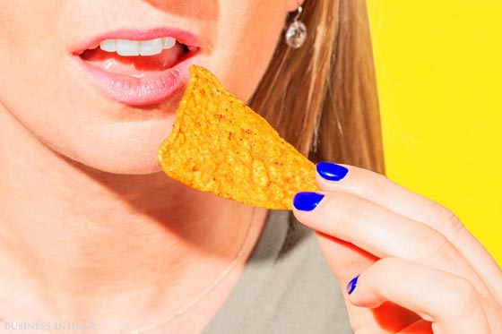 النسبة المثالية من الدهون: عقلك يحب الدهون، و12 مليغرام لكل حصة هي بداية جيدة بالنسبة له، كما يبتهج عقلك حين تتناول نصف السعرات الحرارية من الدهون، ويتفوق دوريتوس في ذلك، إذ يمدك بـ70 من أصل 140 سعراً حرارياً، وفقاً لويذرلي.