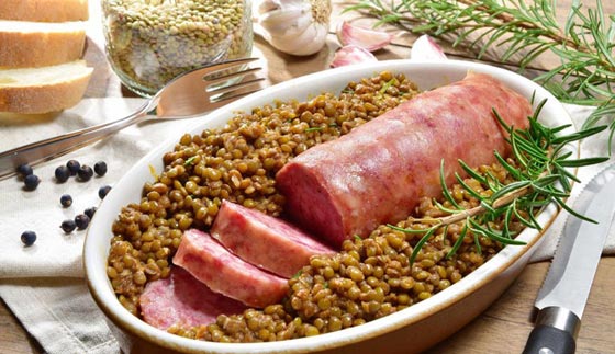 يقال إن هذا الطبق الإيطالي المصنوع من النقانق والعدس يجلب الحظ الجيد في العام الجديد.