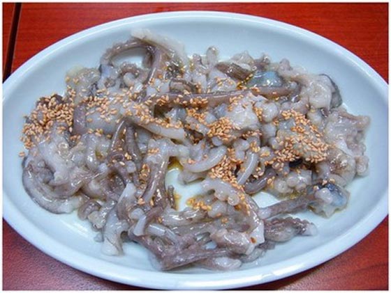 طبق "ساناكجي"-كوريا الجنوبية: يعتبر من أغلى وأخطر الأطعمة في العالم، إذ يموت 6 أشخاص سنويًا، مختنقين به، ويتألف من مجسات أخطبوط حي، قطعت للتو، وما زالت تتحرك بسبب احتوائها على الخلايا العصبية التي تمكنها من التقلص، حتى بعد فصلها عن الجسم، مما يجعل متناولي هذا الطبق، عرضة لالتصاقها بجدار المريء، وتسببها باختناقهم وموتهم بطريقة مؤلمة للغاية. يقدّم الأخطبوط الكبير حيًا وتقطع مجساته على الطاولة ثم ترش بزيت السمسم، كما يفضل بعض الناس في كوريا الجنوبية، تناول صغار الأخطبوط كاملة، إذ يلف كل منها بحذر على العيدان، ويمضغ بشكل جيد، ويؤكد الذواقة أن مذاقه وهو حي أفضل بكثير.