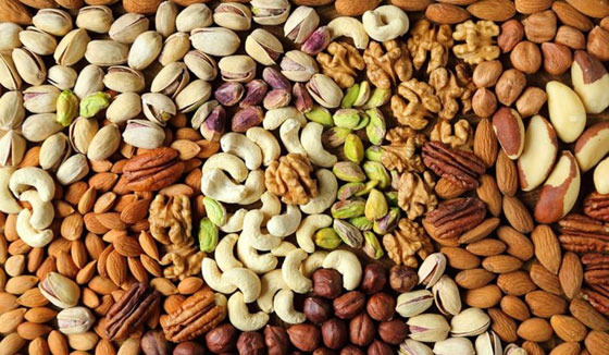 2- المكسرات والبقوليات: المكسرات أيضًا من الأطعمة الغنية بأحماض "أوميغا3" كما تحتوي على مستويات عالية من فيتامين E الذي يمكنه أن يحمي العين من ضعف الإبصار المرتبط بالعمر بحسب الدراسات. ومن أمثلة المكسرات المفيدة للعين الجوز والكاشو والفول السوداني.