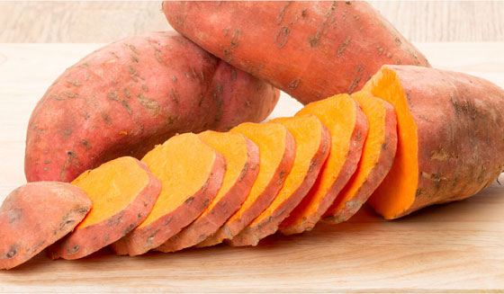 7- البطاطا الحلوة: غنية بمادة "بيتا كاروتين" كما أنها تعتبر مصدرًا جيدًا لفيتامين E المضاد للأكسدة.