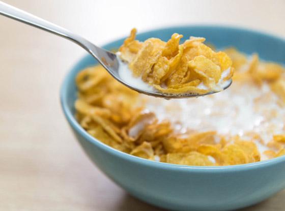 9. حبوب الإفطار: يعتقد كثير من الناس أن حبوب الإفطار (الكورن فليكس) غير ضارة، لكنها في الواقع قد تحتوي على السكر والألوان الصناعية والمواد الحافظة والمنتجات المعدلة وراثيا.