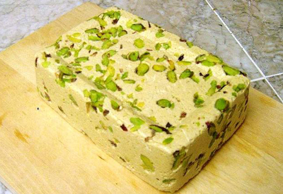 6. الحلاوة الطحينية: تصنع من الطحينة أو طحين السمسم والسكر وعرق الحلاوة. يمكن إضافة المكسرات والفواكة المجففة أيضاً إليها. يمكن تناولها لوحدها أو مغلفة بالشوكولاتة.