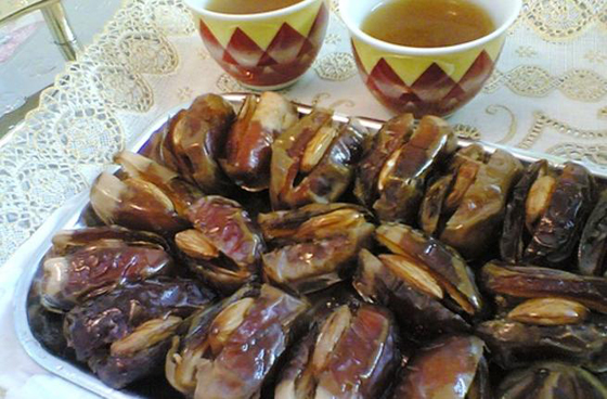 7. التمور المحشية: التمر رفيق القهوة العربية السادة. يحشى التمر باللوز والمكسرات آو البرتقال المجفف ويقدم في مناسبات خاصة مثل عيد الفصح.