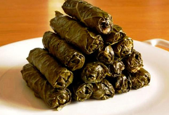 8. ورق العنب أو ورق الدوالي: عبارة عن ورق عنب محشو بالرز واللحم المفروم والبهارات والخضروات المفرومة أيضا. يقدم ساخنًا أو باردًا ويعتبر من الأطباق المرغوبة في عيد الفصح.