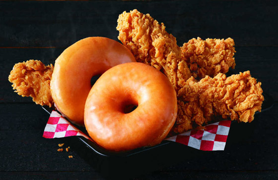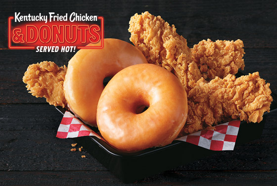 وفي خطوة قد تتسم بكونها إما عبقرية أو مجنونة، أعلنت الشركة مؤخرا أنها بدأت، منذ السادس عشر من سبتمبر/أيلول الجاري، إنتاج مزيج جديد من الدجاج المقلي والكعك المحلى بالسكر (الدوناتس). وتمنح الشركة العملاء خيارين، إما الحصول على وجبة عبارة عن سلة من الدجاج والكعك مقابل 5.49 دولار، والتي تشمل أصابع الدجاج (الخالية من الجلد أو العظام والمغمسة في خليط مقرمش مقلي بالزيت) أو قطع الدجاج بالعظم بالإضافة إلى الكعك.