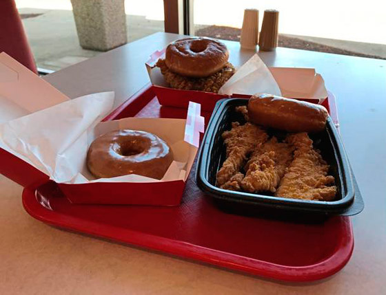 أما الخيار الثاني فهو عبارة عن ساندويش الدجاج مقابل 5.99 دولار، ويتمثل في وجبة من الدجاج المقلي بين قطعتين من كعك الدوناتس، وهو على ما يبدو الخيار الأكثر إثارة. وإذا كنت تريد فقط دونات؟ يمكنك إضافة قطعة واحدة أخرى إلى أي وجبة مقابل دولار، بحسب ما ذكرت قناة سي إن إن الإخبارية.
