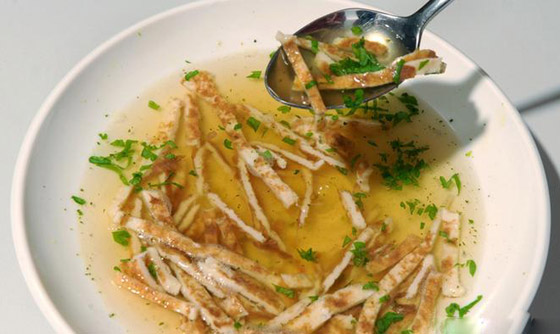 2. حساء شرائح "فليدله": حساء أو شوربة "فليدله" هو حساء بسيط مجهز من المرق وشرائح الفطائر، لذلك فهو طريقة جيدة لاستخدام بقايا وجبات الإفطار وعدم رميها. و من أجل النكهة، أضف إليه البصل الأخضر والكراث (البراصيا) وأوراق الغار والبقدونس والملح والفلفل، وكذلك أية توابل أخرى تحبها. شوربة فليدله موجودة بشكل أساسي في جنوب ألمانيا، وخاصة في بافاريا، تأثرا بمطبخ تيرول بالنمسا المجاورة.