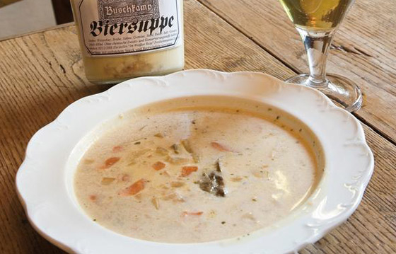 4. حساء البيرة البافاري: يرتبط مشروب البيرة كثيرا بولاية بافاريا، لدرجة أن هناك حساء يسمى "حساء البيرة". يتم تحمير البصل المقطّع مع الزبد ويحمص فتات الخبز قليلا وتُمزج مع المكونات الأساسية، ثم تترك مع مرق اللحم ويُطهى على نار هادئة وتُضاف البيرة والملح والفلفل ويُطهى على نار هادئة مرةً أخرى، ثم يقدّم مع الكرات أو شرائح البصل!