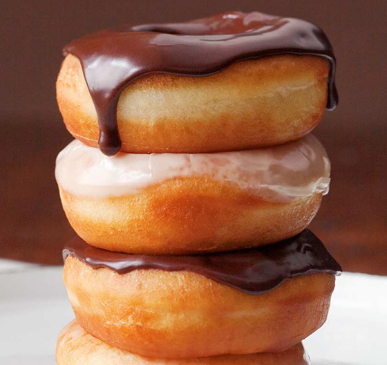 - طريقة تحضير صوص الشيكولاتة: في وعاء يتم إضافة كوب ونصف من السكر البودر مع ربع كوب من الكاكاو البودر المحلى وملعقة كبيرة من الفانيليا السائلة مع ربع كوب من الحليب الدافئ ويتم التقليب جيدا حتى يصبح لدينا صوص سميك بعض الشيء ومتماسك، ويتم غمس قطع الدونات بداخله بعد أن تبرد تماما.