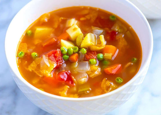 1. شوربة الخضر: حاولوا استخدام عدد كبير من الخضر مثل الجزر، الملفوف، البروكلي، الكوسا، البازيلاء، الكراث وغيرها من أنواع الخضر المُختلفة لكي يتكوّن لديك طبقاً محمّلاً بالفيتامينات والمعادن. أضيفوا الماء والقليل من التوابل أو الأعشاب التي تحبونها. بعد أن تنضج الخضر، ارفعوا الطنجرة عن النار وأضيفوا بضع ملاعق من زيت الزيتون والقليل من الملح. يعتبر الملفوف والبروكلي والجزر من أنواع الخضر الأكثر غنى بمضادات الأكسدة التي تحارب الجذور الحرّة في الجسم.
