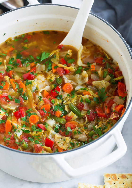 2. شوربة الكرنب: تعدُّ واحدة أنواع شوربة الخضر أيضاً، إنما بطلها الكرنب، يُضاف إليه البصل والكرفس والطماطم مع القليل من التوابل والملح حسب الرغبة. ولا تنسوا إضافة بضع ملاعق من زيت الزيتون بعد أن تبرد الشوربة. يُذكر أن الكرنب يحتوي على الألياف الغذائية، ومعدن البوتاسيوم، والفيتامين "بي 6" B6؛ المكونات الغذائية التي تلعب دوراً فعالاً في حماية القلب والوقاية من الأمراض المتصلة به. كما يحمي من الأمراض السرطانية بفضل غناه بمضادات الأكسدة.