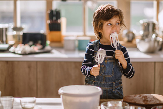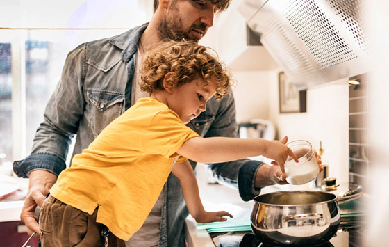 3. العمل الجماعي: قد يكون العمل بهدوء في المطبخ استراحة قصيرة من العوامل الموتّرة، لكن وجود شخص مساعد سواء كان شريكك أو طفلك أمر يعزز المزاج بسبب الشعور بالمشاركة والترقب للنتيجة النهائية.