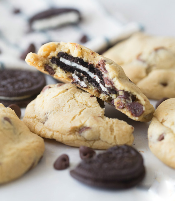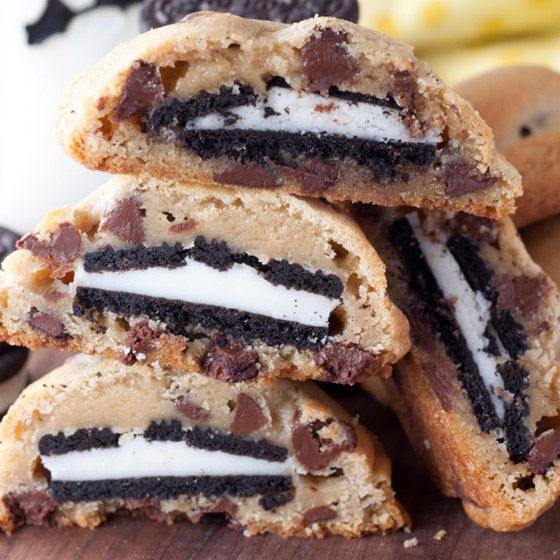 كوكيز محشو بالأوريو.. لضيافة مميزة.. نقدم لك طريقة تحضير نوع جديد من حلويات الكوكيز الشهية المحشوة ببسكويت الأوريو اللذيذ.. حضريه لأطفالك وضيوفك وتمتعوا بأطيب الأوقات بتناول أشهى الحلويات الغربية المميزة والمبتكرة. وقت الطهي: 20 دقيقة. يكفي ل: 4 أشخاص.