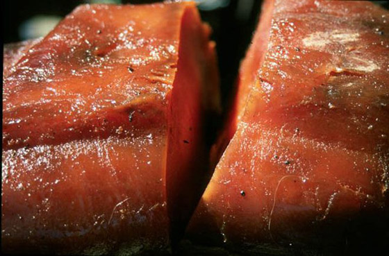 6. لوتفيسك - Lutefisk: يمكن تناول هذا الطبق خلال زيارة أي من الدول الإسكندنافية. المكونات الرئيسية للطبق هي السمك ومسحوق يستخدم عادة للتنظيف ومن مكوناته الأساسية البوتاسيوم الهيدروكسايد. يتم نقع السمك في هذا المسحوق لبضعة أيام ثم تنقع مجددا في الماء البارد لأسبوع كامل للتخلص من أي أثر للمواد تلك. تقدم بشكل منفصل أو مع أطباق جانبية، لكن السمكة نفسها لا يتم إضافة أي نكهة أخرى اليها باستثناء ما تم استخدمه لنقعها.