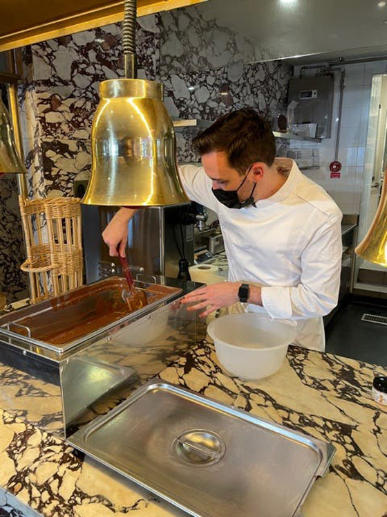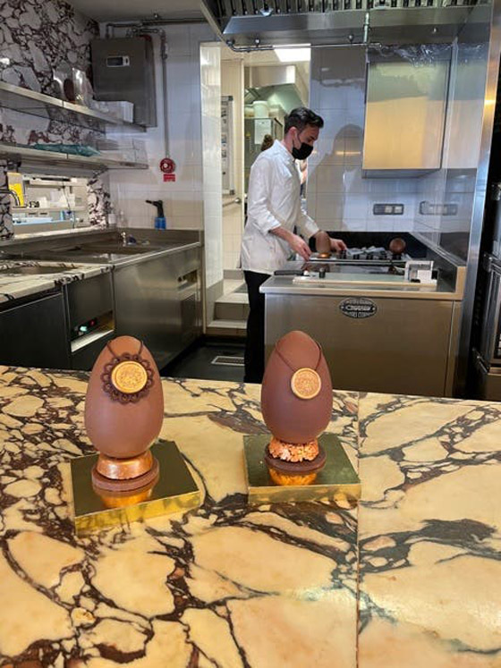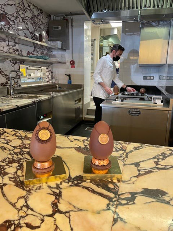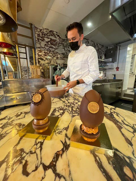 يعملُ الشيف تريستان على قدمٍ وساق لتحضيرِ بيضِ عيدِ الفصح الذي تختلفُ تحضيراتُه هذا العام عن بقيةِ السنين السابقة بسببِ القيودِ التي تفرضُها جائحةُ كورونا، إذ يقومُ هذا الشيف بتحضيرِ البيضِ مسبقا لتقديمِه إلى زبائنِه سفريا.. فالمطعمُ الذي يعملُ فيه مغلقا حتى إشعارٍ آخر.