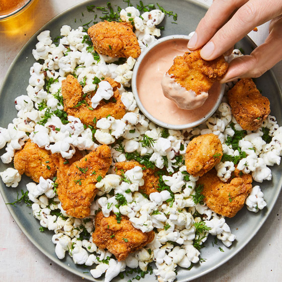 بوب كورن دجاج بالصلصة... قدموا على سفرتكم طبق من الدجاج المتبل بالبهارات المميزة والمغطى بطبقة مقرمشة ولذيذة يعشقها الأطفال خاصة، جربوا بوب كورن الدجاج على طريقة مميزة من مطبخ شايف وقدموه بجانب الصلصة الطيبة واللذيذة. وقت الطهي: 60 دقيقة.. يكفي ل: 4 أشخاص.