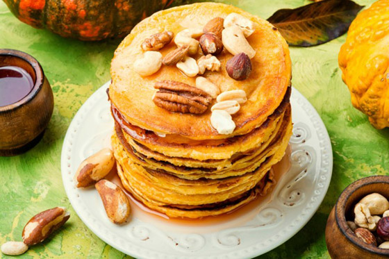 5. زيّنوا البان كيك بالجوز أو بحسب الرغبة وقدموه.