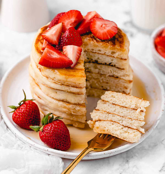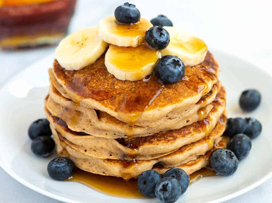 بان كيك نباتي... بمكونات كلها نباتية، تعلموا من مطبخ شايف بلس كيفية صنع حلى البانكيك الشهي والطيب، وقدموه مزيناً بالعسل الطبيعي والفواكه المنوعة والمكسرات المفضلة. وقت الطهي: 30 دقيقة.. يكفي ل: 5 أشخاص.