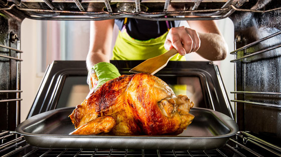 - يوضع الدجاج في صينية داخل الفرن لمدة نصف ساعة على حرارة 180 درجة مئوية.