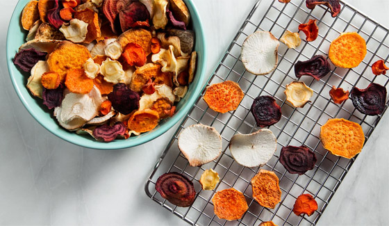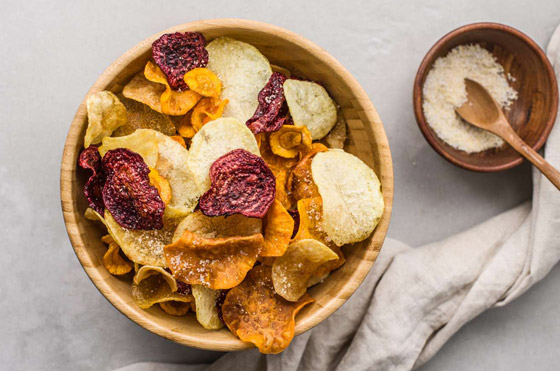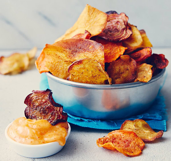 شيبس الخضار الصحي المشوي... الجميع يفضل رقائق الشيبس المقرمشة وخاصة رقائق البطاطس، فهي من الوجبات أو المقبلات التي لا غنى عنها للتسلية والضيافة، إليكم أسهل طريقة لعمل وصفة شيبس الخضار المشوي بطريقة صحية، تعرفوا على الطريقة بالسطور التالية وقدموا بجانبه الصوصات المفضلة. وقت الطهي: 60 دقيقة.. يكفي ل: 4 أشخاص.