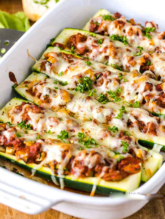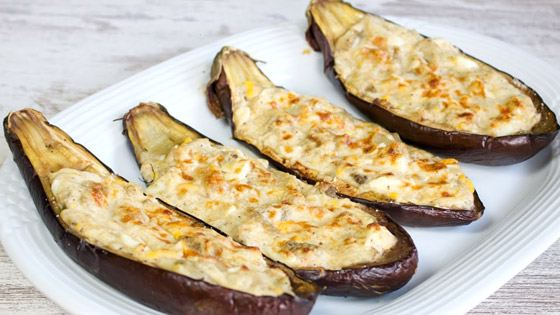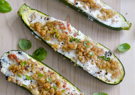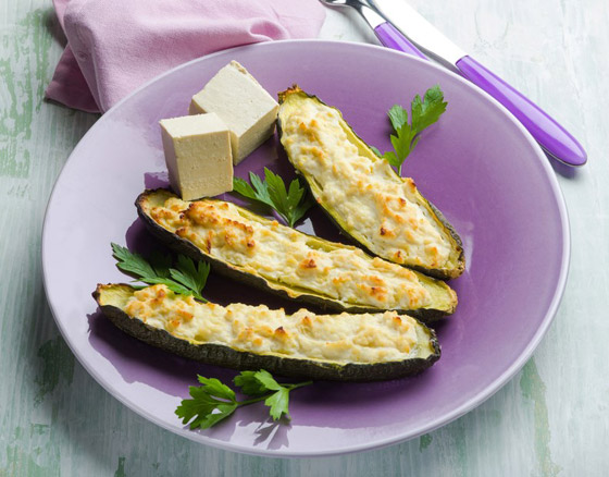4. احشوا حبات الكوسا بحشوة الجبن، وصفّوها في صينية فرن.