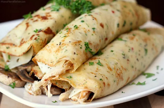 كريب بحشوة الدجاج اللذيذ... من ناحية سهولة الإعداد والسرعة، فإن عجينة الكريب تعتبر على رأس القائمة بدون منازع، ويمكنكم إعداد الحلو والمالح بها. جربوا تحضير وجبة شهية وسريعة من صدور الدجاج المقلية، وقدموا وصفة كريب الدجاج بجبن الموزاريلا اللذيذ وتمتعوا بطعمه الرائع والمشبع على سفرة وجبة الغداء. وقت الطهي: 40 دقيقة.. يكفي ل: 5 أشخاص.