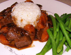 نقوم بتحمير اللحمة فى قليل من الزيت ثم نقوم بإضافة عصير البرتقال بدلا من إضافة الماء فى الطريقة العادية.