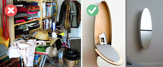 لا يجب تركها مفتوحة طول الوقت لأنها تصبح مكانا لوضع أغراض وملابس عليها!! بنصح خبراء تنظيم المنازل باختيار طاولة كوي يمكن طيها بعد ذلك واقفالها للتوفير في المكان والفوضى أيضا.