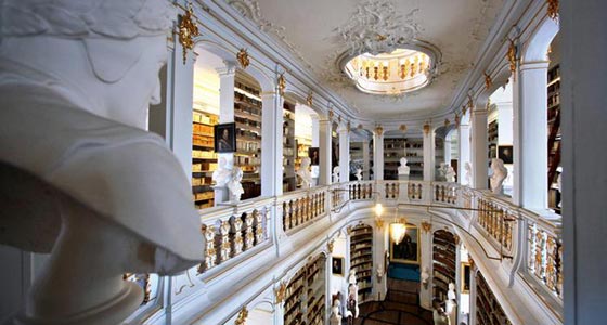 5. مكتبة دير سانت غالن - سانت غالن: يعود تاريخ بعض العينات التي تمتلكها مكتبة دير سانت غالن في مدينة سانت غالن السويسرية إلى أكثر من 1300 عام، وبإستطاعة الزوار مشاهدة مخطط بناء الدير الذي يعتبر من أقدم المخططات في أوروبا، كما بإستطاعة الزوار مشاهدة المومياوات المصرية. وقد أدرجت في عام 1983 ضمن قائمة اليونيسكو للتراث الإنساني العالمي.