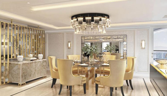 وسيتضمن الجناح، غرفة رئيسية، وغرفة ضيوف، وغرفة مائدة خاصة، وصالة معيشة، وغرف ساونا، ومساحة لمنتجع صحي، كما أن باستطاعة النزلاء في الجناح الاستمتاع بمنظر المحيط الخلاب من النوافذ المحيطة والشرفة الخاصة بالغرفة.
