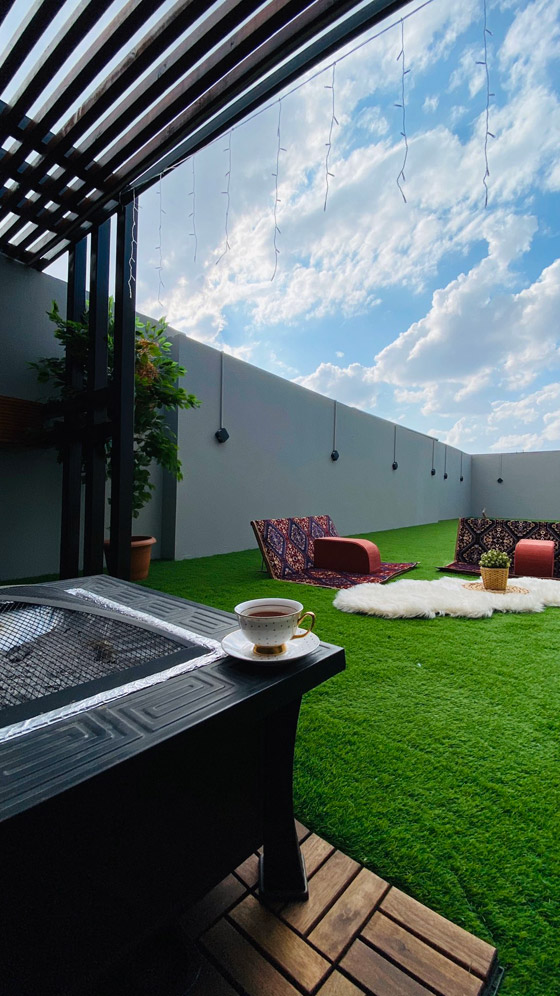 وفي نهاية حديثه وجه متعب العنزي نصيحة لمتابعيه الذين يريدون استغلال مساحة أسطح منازلهم في الابداع وابتكار استراحات فريدة ومدهشة قائلاً: “بالاخير نصيحه مني اذا عندك مساحه بالحوش بالسطح حاول تستغلها ولايهمك كلام الناس اللي تحاول تحبطك .. صدقني بيكون لك وقت جميل فيها وتغيير عن جو البيت والغرف “.