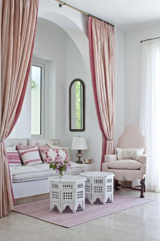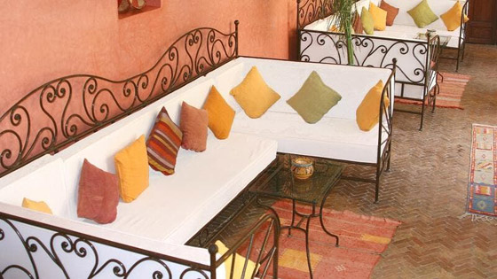 ولا تزال الأسقف المغربية في الديكور تحتفظ بطابعها التقليدي الخاص والمميز وتأتي منقوشة أو بإضافة أعمدة الخشب عليها وتتميز قطع الأثاث بألوان الطبيعة المغربية والتي تتنوع بين الترابي والأزرق والأخضر والأرجواني والبرتقالي بجميع درجاته.