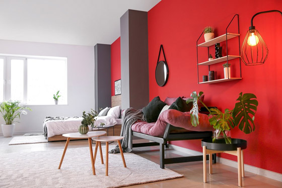 لقد كان اللون الأحمر دائماً لوناً جريئاً ولافتاً للانتباه. وفي عام 2024، سيستمر هذا اللون في ترك انطباع على جدراننا، وسوف يجلب اللون الأحمر المشع، بألوانه الدافئة والجذابة، إحساساً بالعاطفة والحيوية إلى أي مساحة، سواء تم استخدامه كجدار مميز، أو تم تطبيقه على غرفة بأكملها، فإن هذا اللون سيمنح تأثيراً بصرياً مذهلاً.