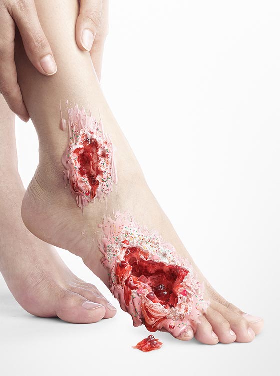 وقد تم تصميم الصور المخيفة من قبل Jaengsem بالتعاون مع جمعية السكري في تايلاند، وتأتي الصور في شكل يبرز مضاعفات تناول الكثير من الحلويات والسكر على جسم الإنسان. وتساعد هذه الصور على تغيير رغبة الإنسان بتناول الحلويات بشكل عام، من خلال رؤية شراب الفراولة أو الكريم كاراميل يقطر من جرح مفتوح في الجسد، أو من خلال مشاهدة سائل الشوكولاته يسيل من يد مفتوحة ومتقرحة.