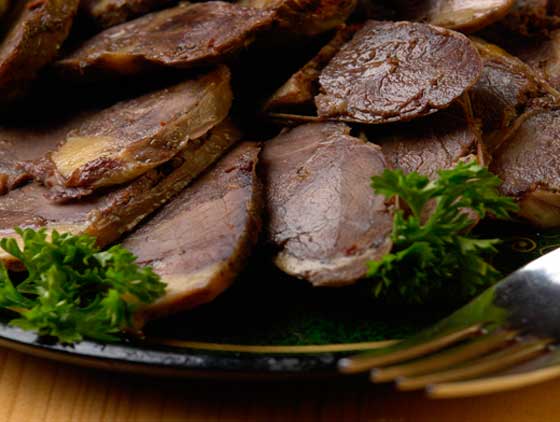 3- لحم الغزال والرنة: لحم الغزال والرنة من اللحوم الحمراء التي يتغذى عليها الكثيرون في مناطق روسيا الشمالية ومناطق اسكندينافيا، وينصح الأطباء بتناول تلك اللحوم لاحتوائها على كميات كبيرة من الحديد وفيتامين (ب) الضروريين لصحة الدم.