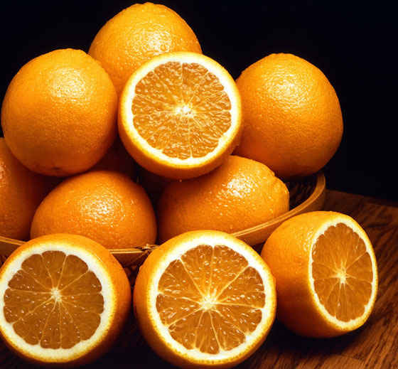 البرتقال: هو من أجمل الفواكه وأروعها. يحتوي على فيتامين سي ، وهو من الفيتامينات الهامة التي تذوب بالماء. وله أهمية في نمو الأنسجة، والتئام الجروح، وتقوية العظام، وعلاج الجروح والأوعية الدموية. كما يقاوم البرد والأنفلونزا. وهو من أهم مضادات الأكسدة، التي تحمي الجسم من التلف. وفيتامين (سي) يعيد للجسم حيويته، ويعالج البشرة والجلد. كما يحتوي أيضًا البرتقال على (الكولاجين) الذي يحفظ شباب البشرة. لذلك فهو يدخل في تركيب كريمات حماية البشرة من الشيخوخة.