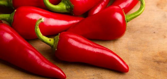 2- الفلفل الأحمر: الفلفل الأحمر الذي يستخدم في الطبخ، له تأثير مسكن على الصداع النصفي، والألم في المنطقة الخلفية من الرأس، حيث يحتوي الفلفل الأحمرعلى مادة الكابسين. بطبيعة الحال، إذا كنت تصابين بالصداع كثيرا، يمكنكِ إضافة الفلفل الأحمر الحار إلى الطعام. ولكن في حالة الأزمة أو الحساسية من الأطعمة الحريفة. خففي ملعقة صغيرة من الفلفل الحار في كوب من الماء الدافئ، ثم إخلطي جيدا لكي لا يظل الفلفل في قاع الكأس، وضعي قطعة من القطن في هذا المحلول مع الحرص على أن تكون مبللة جيدا بالفلفل وضعيها في فتحات الأنف، إلى أن تشعري بالحرارة. العلاج ليس لطيفاً ولكنه يسمح بالتخلص من الصداع. ونحذر من إستخدام هذه الوصفة لمن لديهم حساسية جلدية من الأطعمة الحارة.