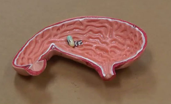 صمم علماء بريطانيون يرقة روبوتية تستطيع المشي داخل الجسم لإيصال الدواء الى المنطقة المعتلة ويمكن ان يغني ذلك عن اجراء عمليات جراحية. وللبروبوت متناهي الصغر المصنوع من مادة السيليكون مئات السيقان التي لا يزيد طولها على 1 ملم وفيه جسيمات مغناطيسية دقيقة بحيث يمكن توجيهه الى المنطقة التي يُراد إيصال الدواء اليها باستخدام مغناطيس كهربائي، كما افادت صحيفة بريطانية في تقرير عن الاختراع الطبي الجديد.