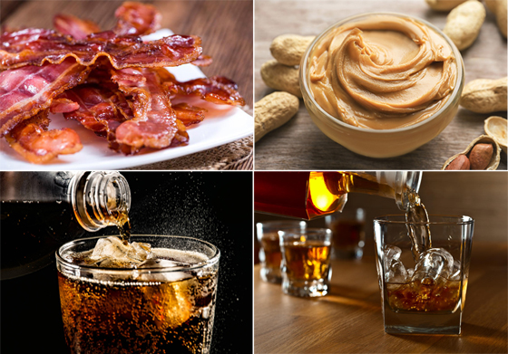 * ومن المأكولات الأخرى التي حذر منها خبراء التغذية، اللحم المقدد، والحلويات الخالية من الدهون، وزبدة الفول السوداني، ومرقة (دريسينغ) السلطة.