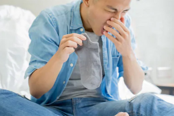 3. العناية بالجوارب: يجب عليك اختيار جوارب تمتص العرق، وابتعد عن الجوارب القطنية الملونة، وقم باستبدالها بأخرى مصنوعة من أقمشة تمتص العرق، واحرص على تغييرها بشكل يومي؛ كما أن الرائحة تنبعث أحياناً من القدم بسبب عدم ارتداء الجوارب لأن احتكاك الجلد مع المادة التي صُنع منها الحذاء، سيتسبّب في انبعاث رائحة في منتهى السوء.