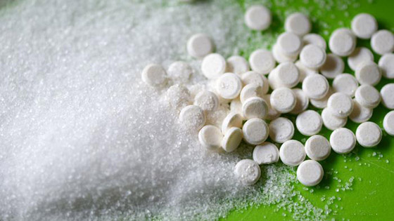 4. السكرين: المحليات المركبة كيميائياً كالسكرين والأسبارتام لديها قدرة تحلية أعلى بكثير من السكر وخالية من السعرات الحرارية.