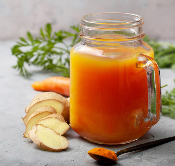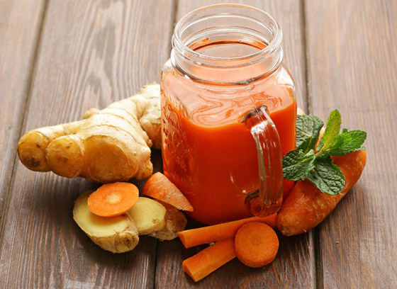 6. تحسين صحة البشرة: يعد عصير الجزر والزنجبيل مزيجا ممتازا من أجل الحصول على بشرة صحية، وذلك لأن الجزر يحتوي على بيتا كاروتين، مما يحسن صحة الجلد، كما يحتوي الزنجبيل أيضًا على مضادات الأكسدة، والفيتامينات، والمعادن التي تعمل على تحسين نسيج البشرة، فضلا عن أن المواد المضادة للأكسدة تساعد في إصلاح تلف الجلد.