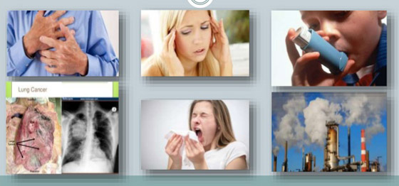 1. سرطان الرئة: يعد تلوث الهواء مسؤولا عن 29% من جميع حالات سرطان الرئة والوفيات بين مرضاه، وفقا لمنظمة الصحة العالمية. وترجح المنظمة الدولية أن الجسيمات الملوثة تتسبب في هذه النسبة الكبيرة لأن حجمها الصغير يسمح لها بالتوغل حتى الجهاز التنفسي السفلي.