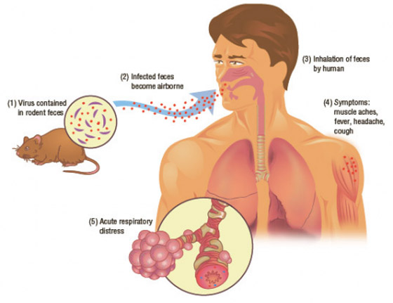 ومع هذا الانتشار الضخم للقوارض، زادت فرص التَّماس بين البشر والقوارض، لتنتقل الأمراض من الفئران والجرذان إلى سكان المنطقة. وحتى هذه اللحظة، لم تُثبت الدراسات الأمريكية انتقال هذا الفيروس بين البشر، رغم أن تشيلي والأرجنتين شهدتا حالات نادرة انتقل فيها أحد أنواع فيروس هانتا، والمسمى فيروس الأنديز أو Andes Virus من إنسانٍ إلى آخر، إلا أن القاعدة المثبتة تَبْقَى أنَّه ينتقل من القوارض إلى البشر.