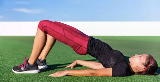 يوقف الجلوس عضلات الأرداف ويمنعها من العمل بشكل صحيح. ويعتبر تمرين الجسر مثالياً لإعادتها إلى العمل. استلقِ على ظهرك مع وضع يدك على جانبيك. اثنِ ركبتيك وتأكد من أن قدميك على الأرض. اضغط على ذراعيك وارفع الوركين لأعلى. في نفس الوقت، ثبت كعبيك على الأرض. كرر التمرين لـ 20 مرة.