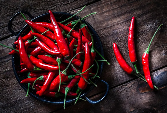 5. الفلفل الحار: إن الكابسيسين، مادة عديمة النكهة توجد في الفلفل الحار، تقلل الشهية وتعزز عملية الأيض. يحذر الخبراء من أن تأثير مادة الكابسيسين يصبح ضئيلًا على إنقاص الوزن إذا لم يتم تناولها باعتدال.