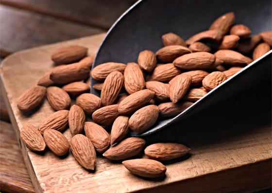 7. اللوز: يعد اللوز مصدراً غنياً بالكالسيوم، الذي يساعد على تقوية مينا الأسنان، كما أنه يقلل من تراكم الجير على الأسنان.