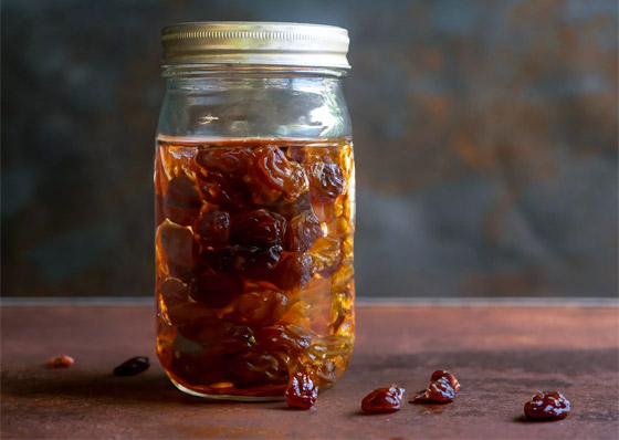 يتم صنع ماء الزبيب عن طريق نقع 10-12 حبة زبيب في كوب من الماء في درجة حرارة الغرفة. يتم تغطية الكوب طوال الليل ثم يتم شرب الماء في صباح اليوم التالي على معدة فارغة لتحقيق أقصى استفادة، كما يلي: