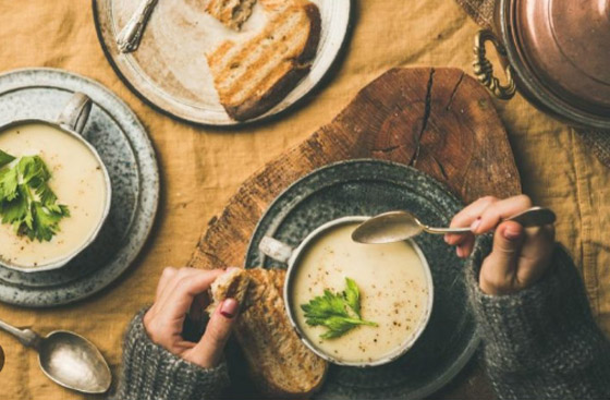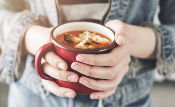 احرص على تناول شوربة الخضار المغذية التي يسهل هضمها، وأضف إليها التوابل الدافئة مثل الزنجبيل والكركم والكمون لتعزيز النكهة ودعم الهضم.